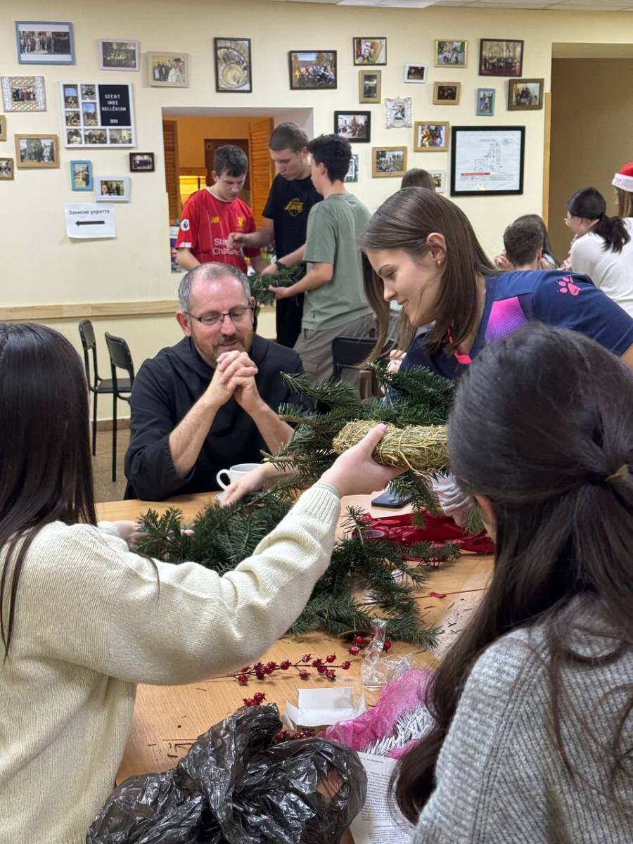 Adventi várakozás – közös koszorúkötés a liceum tanáraival és diákjaival.
